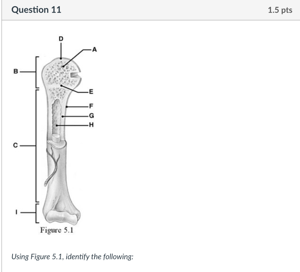 Anatomy Ch 5 Homework Docx Figure 5 1 Using Figure 5 1 Identify The Following 1 The Proximal Epiphysis Is Represented By Letter B 2 The Area Course Hero